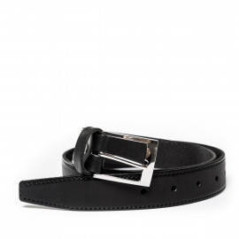 Ремень подростковый Besom Black черного цвета изготовлен из гладкой натуральной кожи высокого качества. Изделие имеет зауженный конец со скругленными краями и крупные круглые отверстия для застежки, что упрощает процесс регулировки. Классическая пряжка с отделкой под хром выполнена в виде прямоугольника и закреплена заклепкой. Есть возможность укор..