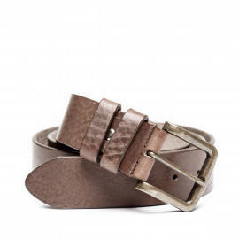 Ремень мужской Elfin Brown коричневого цвета сделан из натуральной высококачественной кожи. Блестящая, гладкая поверхность выглядит слегка потертой. Металлическая пряжка классического типа в виде квадрата украшена отделкой под бронзу. Край изделия имеет скругленную вытянутую форму. Присутствует возможность укоротить длину модели. С изнанки нанесен ..