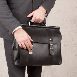 Портфель на саквояжной планке Garston Black мужской кожаный