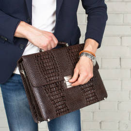 Код товара: Портфель Braydon Brown Caiman мужской кожаный коричневый