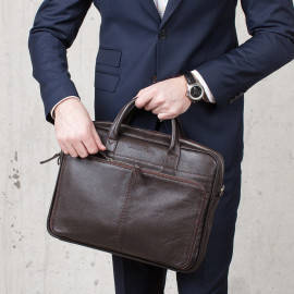 Код товара: Деловая сумка Elberton Brown мужская кожаная коричневая