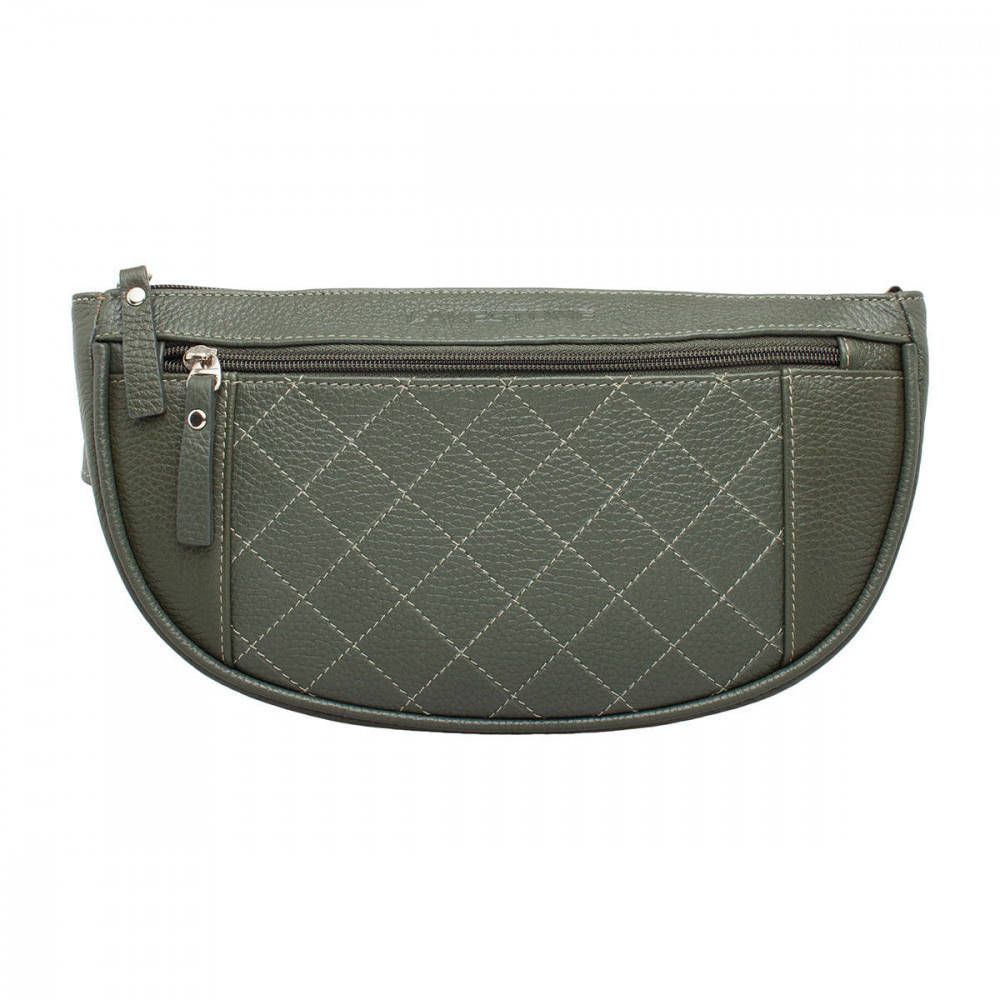 Кожаная поясная сумка Nevil Green имеет форму полумесяца в нежном оттенке оливы. На таком фоне красиво и четко выделяются декоративные прострочки на одной из деталей лицевой части. За этой вышивкой...