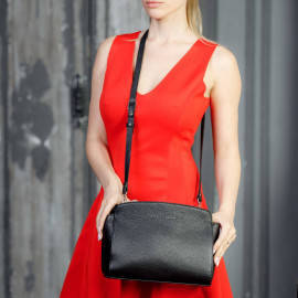 Практичная дамская сумочка Caledonia Black, выполненная из черной фактурной кожи, оснащена двумя отделами, которые поделены тонким карманом, выполняющим функции перегородки. Множество кармашков отк...