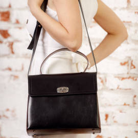 Элегантная женская сумка Astrey Black/Burgundy представлена в сдержанных черных и темно-бардовых тонах. Брендовая модель с перекидным верхом закрывается на аккуратную серебристую застежку, которая ...