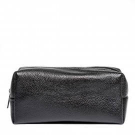 Косметичка Kirkby Black черного цвета выполнена в форме объемного прямоугольника с широкими боковинами. Она изготовлена из 100% натуральной кожи с блестящей поверхностью и застегивается сверху застежкой-молнией. Внутри располагается одно просторное отделение, куда можно сложить необходимые косметические средства. Модель отличается стильным и минима..